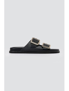 Issue Παντόφλες με γούνα και κέντημα - Μαύρο - 032011