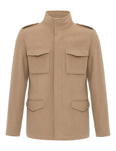 Prince Oliver Water Repellent Hooded Parka Jacket Μπεζ Modern Fit