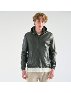 Prince Oliver Biker Jacket Μαύρο Double Faced & Αποσπώμενη Κουκούλα in Sheep Nappa Leather Modern Fit