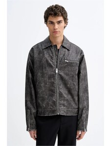 BOSS Green κοντό ανδρικό δερμάτινο Μπουφάν BOSS X PORSCHE