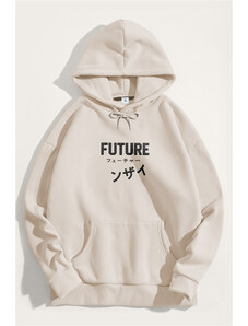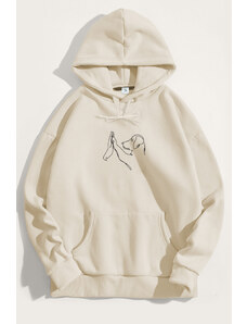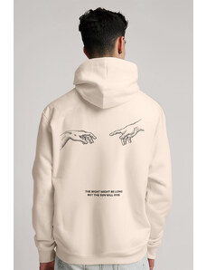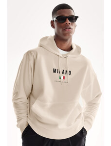 UnitedKind Mont Blanc Grey Calligraphy, Φούτερ με Κουκούλα σε Εκρού Χρώμα