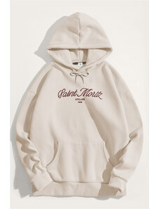 UnitedKind Saint Moritz Switzerland, Φούτερ με Κουκούλα σε Εκρού Χρώμα