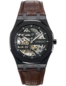 GREGIO The Skeleton Automatic - GM100051 Black case with Brown Leather Strap