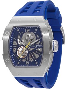 PIERRE CARDIN Skeleton Automatic - CF.1013.PD.1, Silver case with Blue Rubber Strap