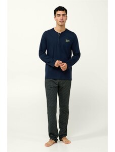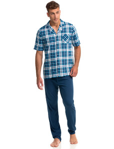 VAMP Ανδρική Βαμβακερή Πυτζάμα με Πατιλέτα 23610-blue