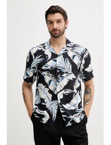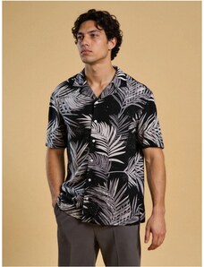 LOSAN Ανδρικό μαύρο κοντομάνικο πουκάμισο LMNAP0102-24008 black, Χρώμα Μαύρο, Μέγεθος M