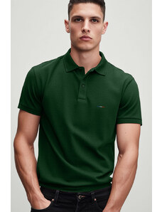 Prince Oliver Premium Polo Πράσινο in Cotton with Logo Patch Modern Fit