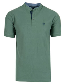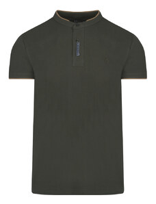 Prince Oliver Two Tone Mao Polo Double Pique Χακί in Cotton Regular Fit
