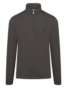 Prince Oliver Premium Zip-Neck Μπλούζα Λαδί με Logo Patch Modern Fit