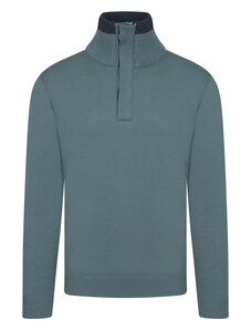 Prince Oliver Premium Zip-Neck Πλεκτή Μπλούζα Πράσινη Modern Fit