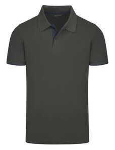 Prince Oliver Two Tone Polo Double Pique Λαδί in Cotton Regular Fit