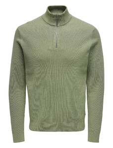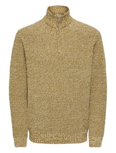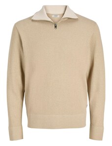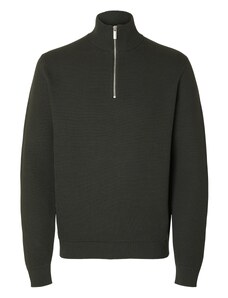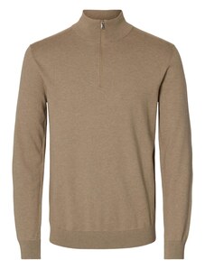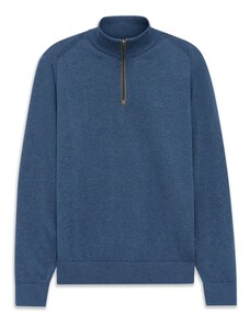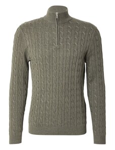 Prince Oliver Premium Zip-Neck Πλεκτή Μπλούζα Λαδί Modern Fit