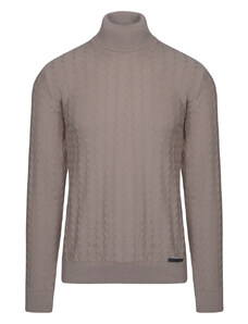 Prince Oliver Πουλόβερ Ζιβάγκο Καφέ με Cable- Knit Πλέξη (Modern Fit)