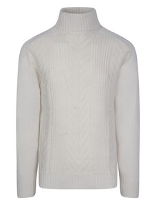 Prince Oliver Πουλόβερ Ζιβάγκο Εκρού με Cable- Knit Πλέξη (Modern Fit)