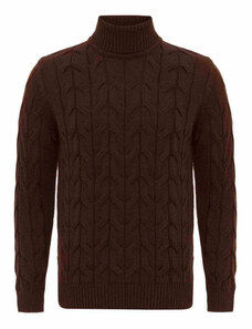 Prince Oliver Πουλόβερ Ζιβάγκο Καφέ με Links - Knit Πλέξη Modern Fit