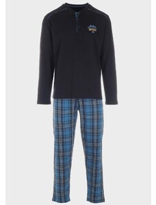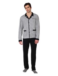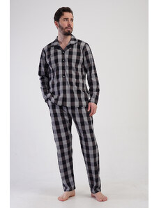 Vienetta Man Ανδρική χειμερινή βαμβακερή κουμπωτή πυτζάμα με καρό παντελόνι Plus Size(1XL-4XL)-409191