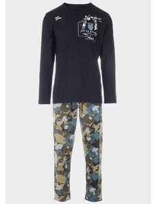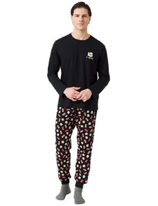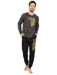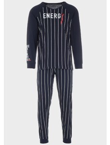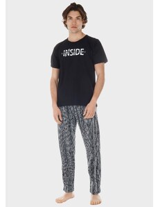 Gsecret Ανδρική πιτζάμα με logo "Εnergy" παντελόνι με ρίγες.Ηomewear Collection ΜΑΥΡΟ