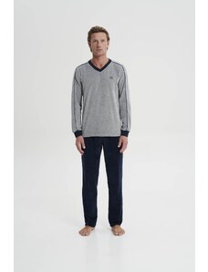 Marc O'Polo Πιτζάμα μακριά ναυτικό μπλε / λευκό μαλλιού