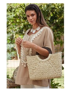 ANNA RAXEVSKY Γυναικεία εκρού μπλούζα με πατιλέτα B25224 ECRU, Χρώμα Εκρού, Μέγεθος M
