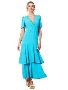 ANNA RAXEVSKY Γυναικείο πετρόλ μάξι φόρεμα με κρουαζέ μπούστο DF21135 PETROL, Χρώμα Γαλάζιο, Μέγεθος S