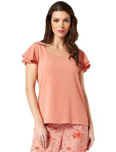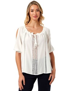 ANNA RAXEVSKY Εκρού κοντομάνικη μπλούζα βισκόζης με δαντέλα, B24106 ECRU, Χρώμα Εκρού, Μέγεθος S