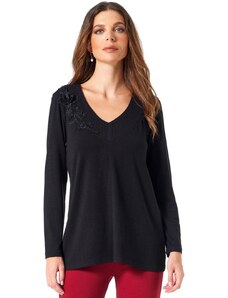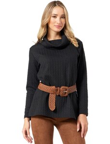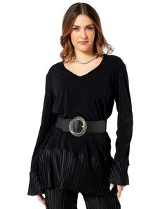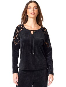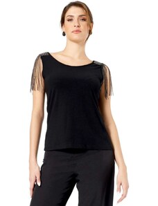 ANNA RAXEVSKY Γυναικεία μαύρη ζακάρ μπλούζα B24208 BLACK, Χρώμα Μαύρο, Μέγεθος M