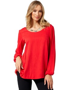 ANNA RAXEVSKY Γυναικεία μπορντό φλοράλ μακρυμάνικη σατέν μπλούζα B25251 BORDO, Χρώμα Κόκκινο, Μέγεθος S