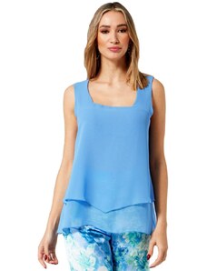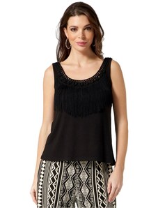ANNA RAXEVSKY Μαύρη αμάνικη μπλούζα με εμπριμέ βολάν B25108 BLACK, Χρώμα Μαύρο, Μέγεθος S