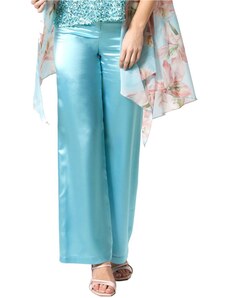ANNA RAXEVSKY Γαλάζια σατέν ψηλόμεση παντελόνα σε ίσια γραμμή T25119 LTBLUE, Χρώμα Γαλάζιο, Μέγεθος S