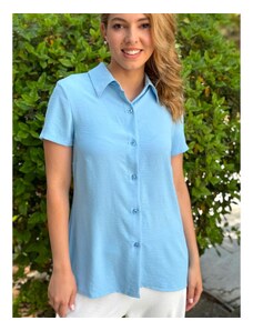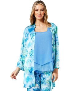 ANNA RAXEVSKY Γαλάζια φλοράλ σατέν μακρυμάνικη πουκαμίσα μάο B25147 LTBLUE, Χρώμα Γαλάζιο, Μέγεθος M