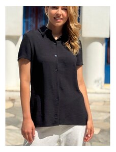 ANNA RAXEVSKY Γυναικείο φλοράλ κοντομάνικη πουκαμίσα V B25153 BLACK, Χρώμα Μαύρο, Μέγεθος S