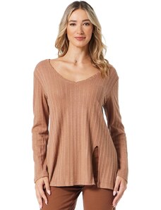 ANNA RAXEVSKY Γυναικείο μακρυμάνικη καφέ πλεκτή ριπ μπλούζα B25209 BROWN, Χρώμα Καφέ, Μέγεθος M