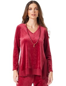 ANNA RAXEVSKY Γυναικείo μπορντό βελούδινο ελαστικό παντελόνι T25206 BORDO, Χρώμα Κόκκινο, Μέγεθος S