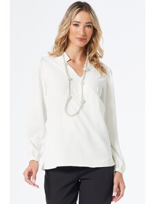 ANNA RAXEVSKY Γυναικεία λευκή μπλούζα V B21100 ECRU, Χρώμα Λευκό, Μέγεθος S