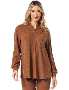 ANNA RAXEVSKY Γυναικεία μακρυμάνικη καφέ πλεκτή μπλούζα B25208 BROWN, Χρώμα Καφέ, Μέγεθος L
