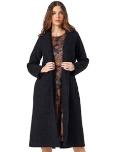ANNA RAXEVSKY Γυναικείο μαύρο μπουκλέ μακρύ παλτό Z25202 BLACK, Χρώμα Μαύρο, Μέγεθος S