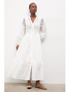 Το ροζ μάξι φόρεμα Answear.LAB είναι ένα αέρινο κομμάτι σε κλος γραμμή, που αναδεικνύει τη γυναικεία σιλουέτα και χαρίζει ανάλαφρη αίσθηση. Το μακρυμάνικο αυτό μοντέλο με το φλοράλ μοτίβο είναι ιδανικό για τη δημιουργία ρομαντικών εμφανίσεων για καλοκαιρινές εκδηλώσεις και ειδικές περιστάσεις, προσφέροντας μια νότα ανεμελιάς και κομψότητας.