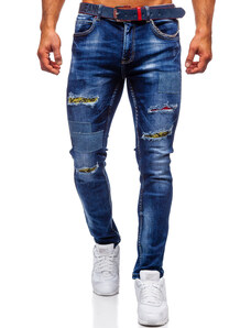 Μπλε μαρέν ανδρικό τζιν παντελόνι φόρμας slim fit Bolf με ζώνη 80034W0