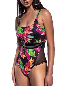 Bluepoint γυναικείο μαγιό ολόσωμο, πολύχρωμο με σχέδια! Άνοιγμα στην πλάτη και σούρα στο πλάι του μαγιό με δέσιμο στο τελείωμα 24058083-10
