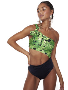 Bluepoint γυναικείο μαγιό ολόσωμο, σε πράσινο και μαύρο χρώμα με σχέδια!Με έναν ώμο, διακοσμητικό κρίκο στην τιράντα και άνοιγμα στο πλάι 24058066-16