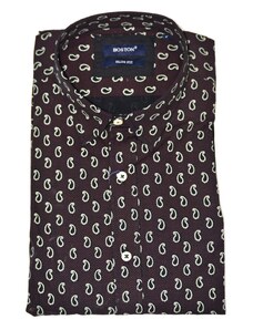 Ανδρικό Πουκάμισο με Στενή Γραμμή Floral Boston18954-1 Μακρυμάνικο Μπορντό