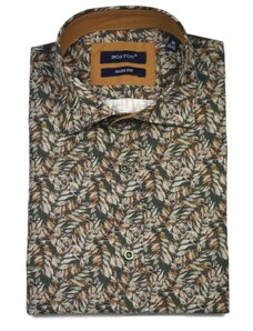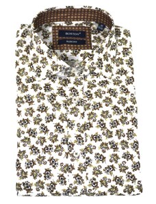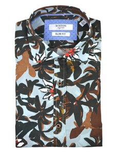 Ανδρικό Πουκάμισο με Στενή Γραμμή Floral Boston 200-2 Μακρυμάνικο Γαλάζιο-Καφέ