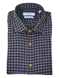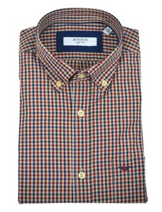 Ανδρικό Πουκάμισο με Κανονική Γραμμή Boston 7354-3 Μακρυμάνικο Καρό Μπλε-Καφέ