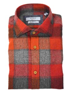 Ανδρικό Πουκάμισο Λινό με Κανονική Γραμμή Boston 414-2 Καρό Μακρυμάνικο Κόκκινο