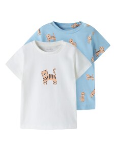 NAME IT Μπλουζάκι 'NBMSING' γαλάζιο / καφέ / γκριζομπέζ / λευκό