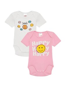 Minerva Βρεφικό Φορμάκι Κορίτσι Κοντό Μανίκι Happy Smile