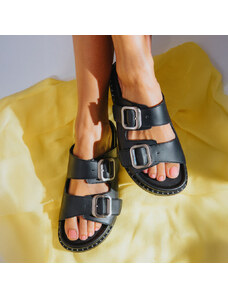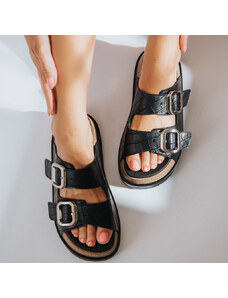 CARAD Δερμάτινα σανδάλια Ελληνικής Κατασκευής με φαρδιά λουράκια Μαύρο