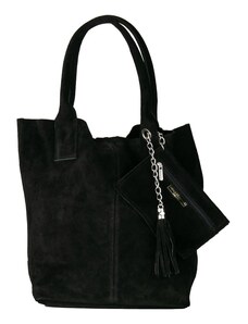 Coco's Bags Μαύρη Καστόρινη Τσάντα Ώμου με Πορτοφολάκι και Κρόσσια