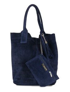 Coco's Bags Μπλε Καστόρινη Τσάντα Ώμου με Πορτοφολάκι και Κρόσσια