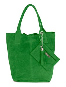 Coco's Bags Πράσινη Καστόρινη Τσάντα Ώμου με Πορτοφολάκι και Κρόσσια